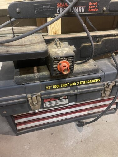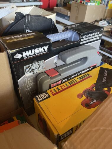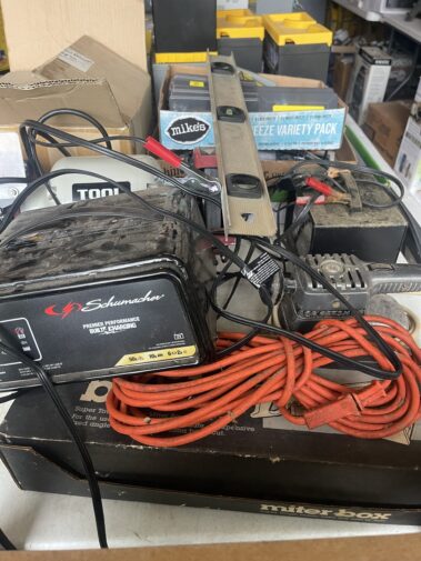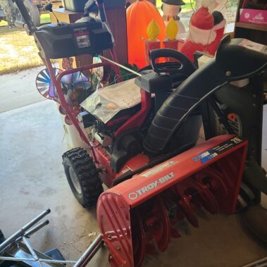 Troy-Built 26” Snow blower; table saw; Craftsman power Miter saw; Craftsman table saw; (2) Craftsman Scroll saws; bench grinder; Craftsman reciprocating saw, NEW: Ryobi Garden Tiller; Snap On Power washer; Huskey air tool kit; power hand tools too numerous to list; Shop Vac; 2 wheel cart; Air multi-cutting tool; Many hand tools and supplies too numerous to list..; weed whip; Ladders; 500 amp Booster starter; and much much more…