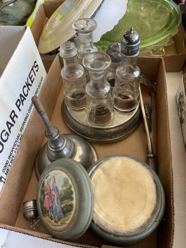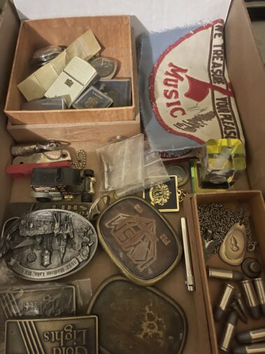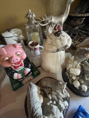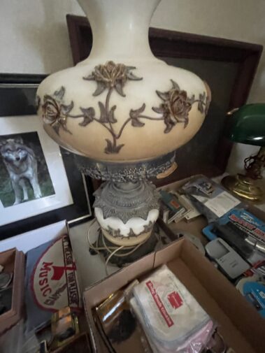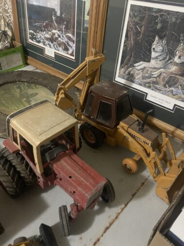 Cream Separator; Model cars; Train set; Case Toy Loader; toy tractor; Wildlife and other Pictures and frames; Beer light and other Beer Collectables; Trumpet; Collectable fishing; Child’s Singer Sewing Machine (in case); LP and 45 RPM records; Carnival glass; Depression glass; Beer Steins; Hand stitched Quilts; old Radios; Costume jewelry; Enamelware; Local advert.; lamps; BOOKS; Silver Flatware and Holloware; Stoneware items; Belt buckle collect.; Braided rug; floor lamps; Mirrors; Tapestry; Ethnic Cookie Jar; silver cruet set; prim. Kitchen items; Juice King juicer; lighters; pocket knives; Mankato Candy Kitchen and other advertising items; Many Christmas decorations;