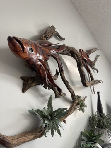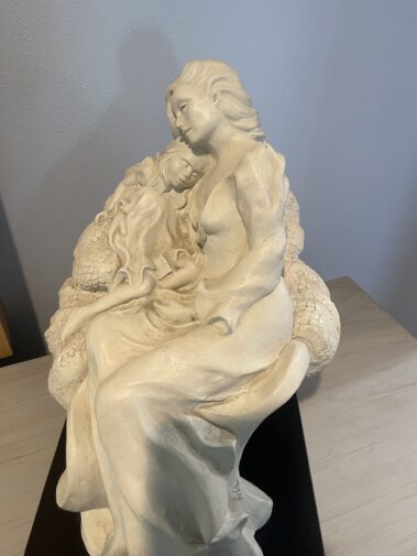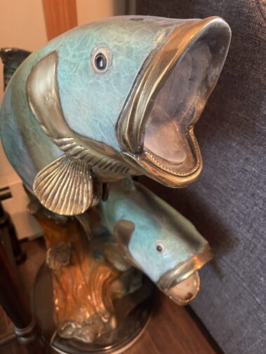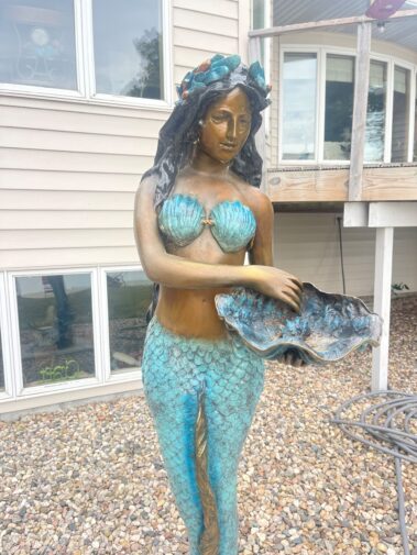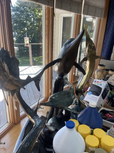 Several pcs. Sculptured Art 6 ft. Mermaid Sculpture; Fish Sculptures; mother and child; Dozens of Wildlife and other framed Prints; Susan Amiton signed and numbered prints; Bronze Fish with Letter of Auth.; Terry Redlin Prints; Vintage Bronze Clock; Craft Items including Scrap Booking, Fabric and Sewing items; Shop Vac; Dress Form; Canning supplies; And more….