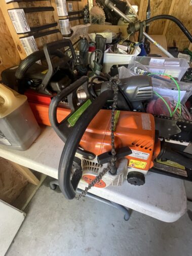 60” Zero Turn Toro Mower; Cyclone Power Rake; 1150 Snapper Snow Blower; Self propelled lawnmower; DR Gas Brush Cutter; Gas and elec. Blowers; Power /washer; Garden cart; Sev. Chain saws include. Stihl; Scaffolding; Shop Vac; 100’s of hand tools; cordless power tools; tool boxes; Garden Tools too numerous to list; Live Traps; Garden Decorative items too numerous to list; Ryobi Gas Weed Wacker; and much much, much more….