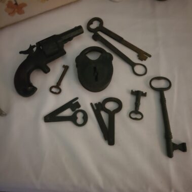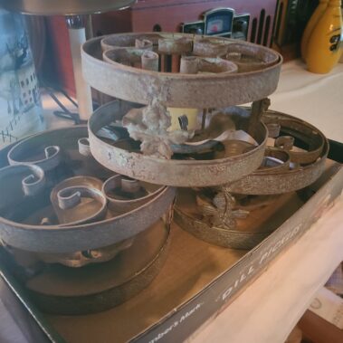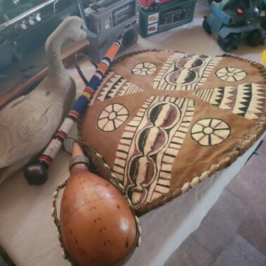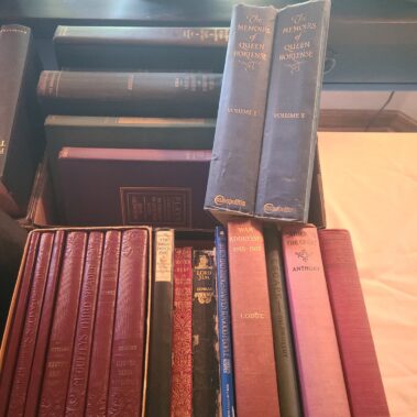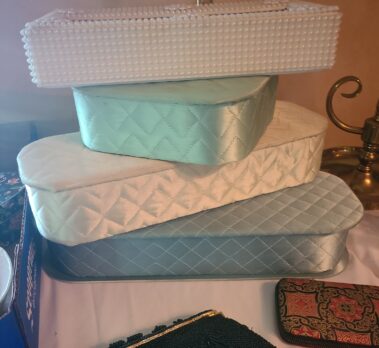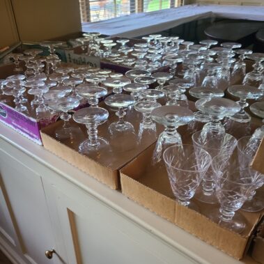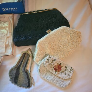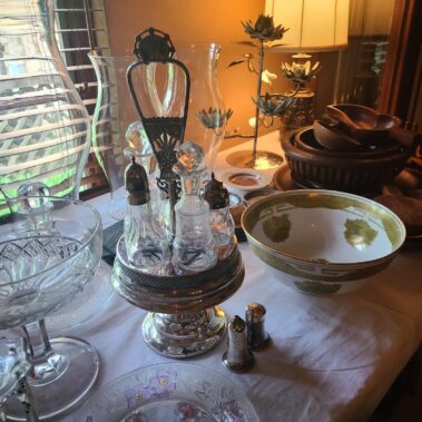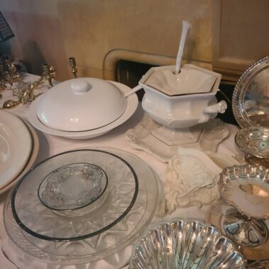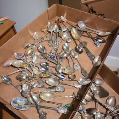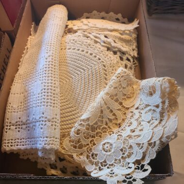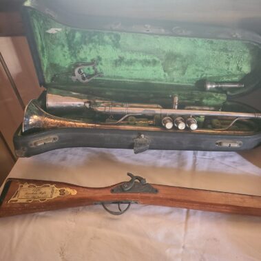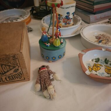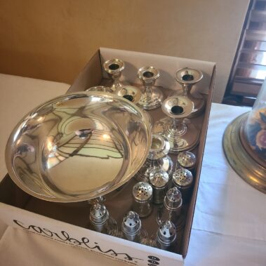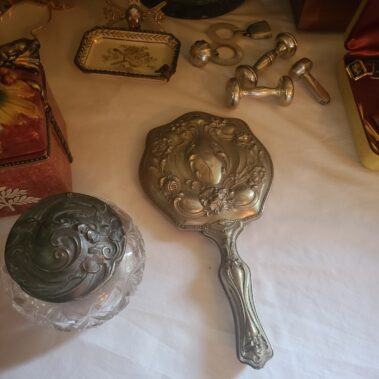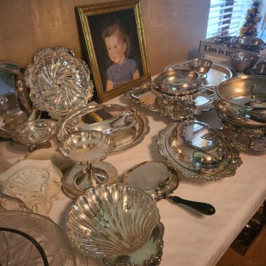 Full set RABELAIS Crystal Stem sets; Georgia Bullet Mirror; (double); Antique handmade Doll bed; Hand Stitched quilts and fancywork; Linens; Many old History-Child and many other Books too numerous to list; Duck Decoys; Silver dresser set; Felt Hats; old keys and padlock; Crystal figures; Many garden and yard ornaments; Clarinet; Trumpet; Vintage Toys; Steamer and other trunks; (2) Vintage sleds and Toboggan; rug beater; and much much more……