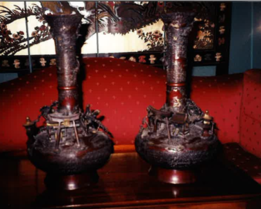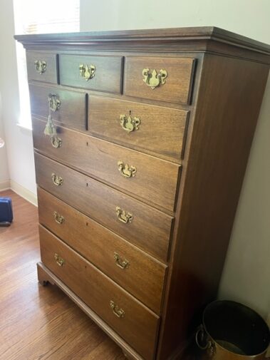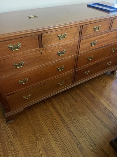 Pair of Japanese Bronze Vases circa 1720. Raised Pastorial Scenes; 18th Century Mahogany Dining Table and 6 chairs; Antique Youth Chair; Leather Office Chair and Brass Spittoon from Wisc. Senate (Senator Chester Dempsey); 1790yr. Sheraton Mahogany Sideboard; 1770yr. Georgian Mahogany Chest of Drawers; 1775 30’’ Mahogany Tilt-Top Table; 1870yr. Chest of Drawers from Oriental Art Gallery; Chippendale Five Drawer Loway with Shell Motif and Clawfoot Legs; 1760yr. Chippendale Mahogany Bureau; 18th Cent. Cottage Chest with orig. Brass; 18th Century Pennsylvania Chest on Chest Corner Cupboard; Antique Blanket Chest; 1760yr. George lll Long Case Grandfather Clock (Martin Hall of England movement); 1770 English Grandfather Clock; 19th Cent. Six Panel Chinese Coromandel Screen; 1770 Georgia Mahogany Chest18th Cent. Butlers Tray; 1830 Child’s Ladderback Rocker; 6 pc. Reed and Barton Sterling Silver Service; English Chippendale Mirror; Baccarat “Rabelais design” Wines-Water-Champagne Glasses; Japan Cloisonne Vase; George Morland Prints; Many Art Gallery Framed Artwork; Turkish Framed Print; 1900yr Japanese Woodblock Engravings; Several Oriental Area Rugs (High Quality) & Much, much, more….
